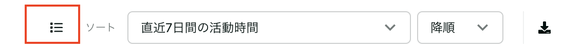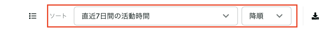 ユーザーリスト右上でカラムと降順・昇順を設定することでリストをソートすることができます。