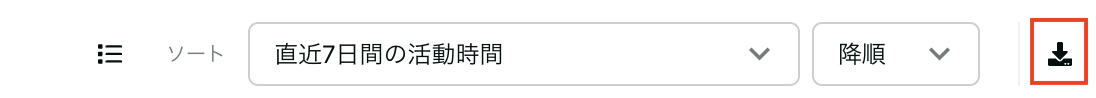 ユーザーリスト右上のダウンロードアイコン選択すると表示されているリストをCSVファイルでダウンロードすることができます。